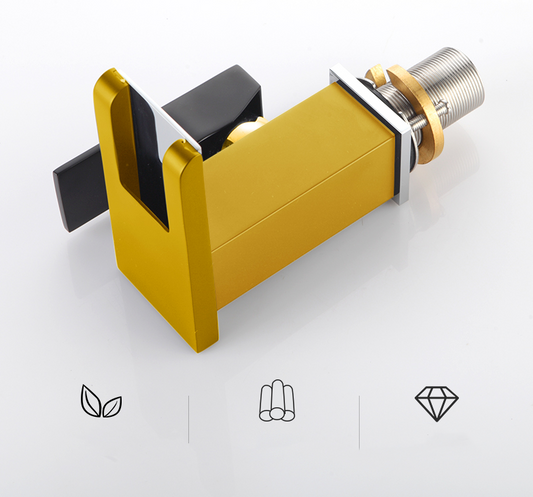 Luminous waterfall faucet in bathroom washbasin