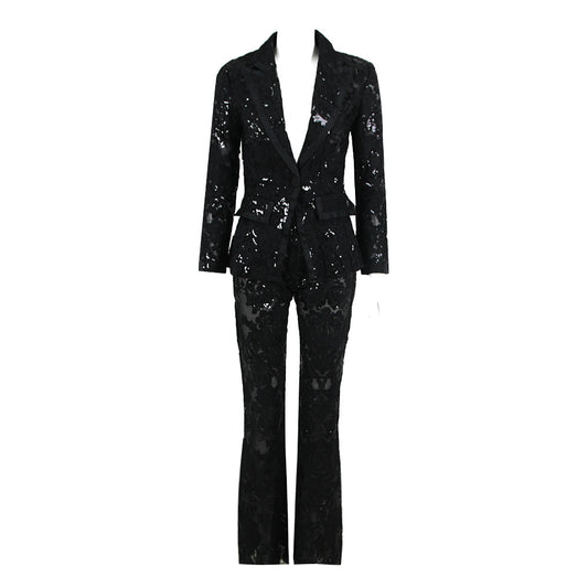 Hollow-out Two-piece Tight Sheath Trousers Set