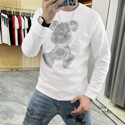 2023 Mens Bear Rhinestones Sweatshirt Streetwear