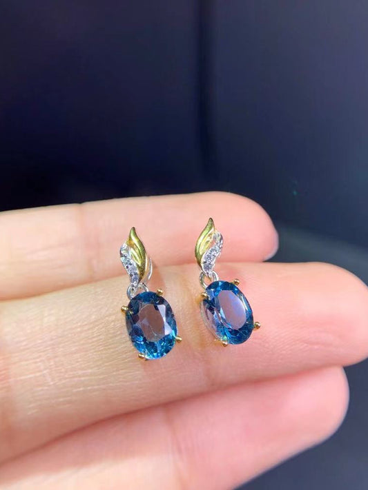 Natural London Blue Topaz 925 Sterling Silver Earrings