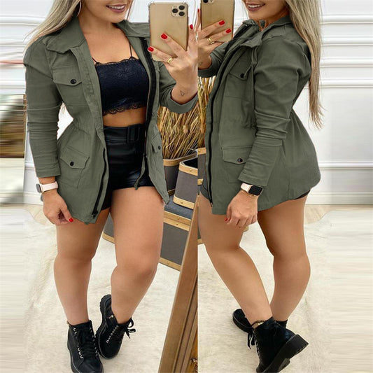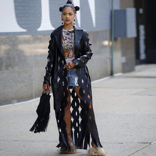 Women's Clothing Lapel Hollow Cardigan Trench Coat