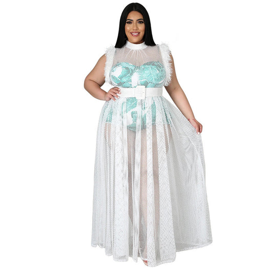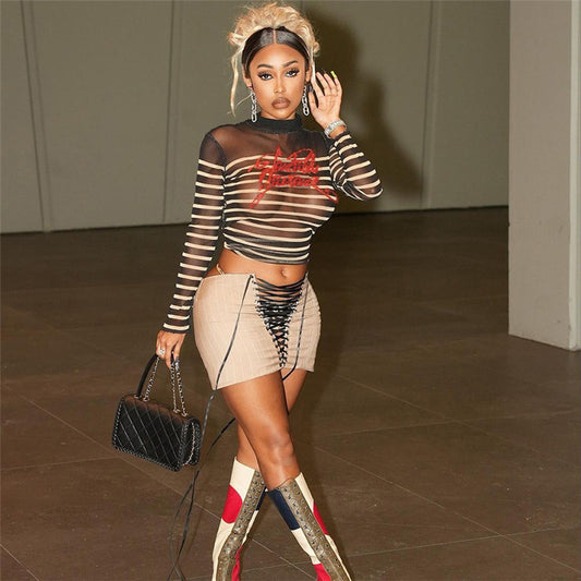 Women's Temperament Sheer Mesh Dress Two-piece Suit