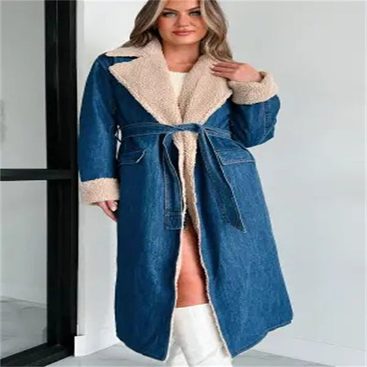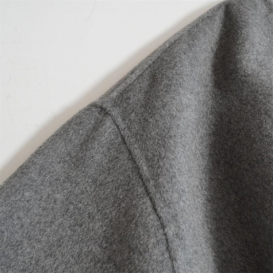 Gray Collarless Loose Side Slit Belt Lace-up Long Lazy Woolen Coat