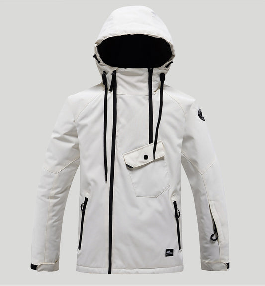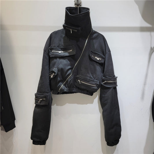 Oblique Zipper Multi-pocket Thickened Keep Warm High Waist Cotton Coat Jacket
