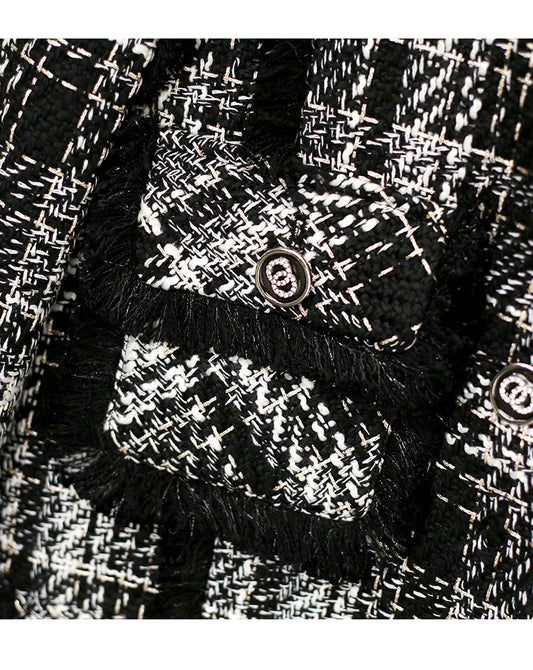 Plaid Mid-length Fleece-lined Black Wool Coat