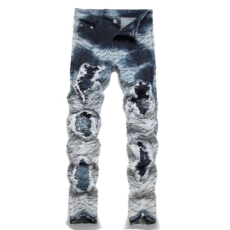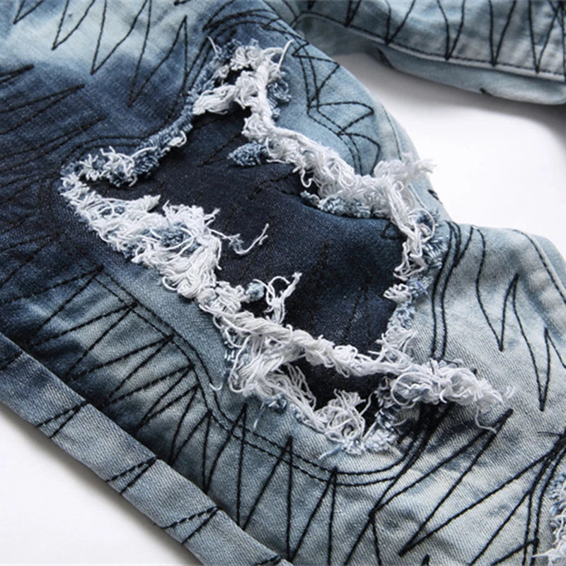 2024 New Embroidered Punk Style Men's Mid-Waist Ripped Jeans