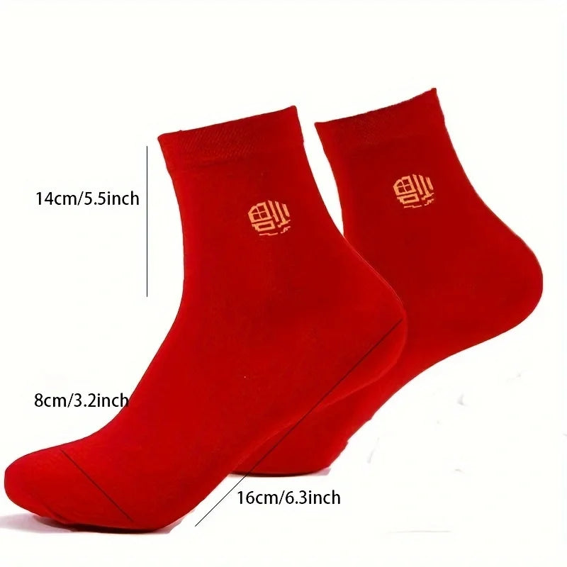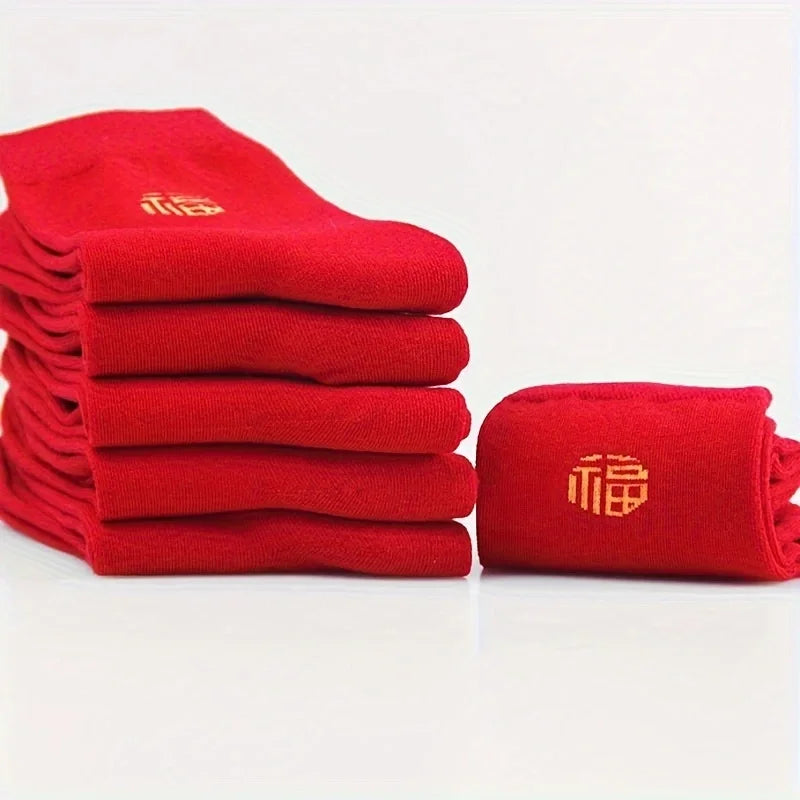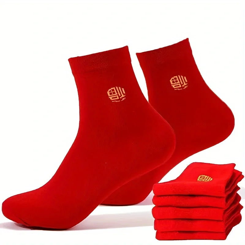 3pair/5 Pairs Chinese New Year Red Socks 2024