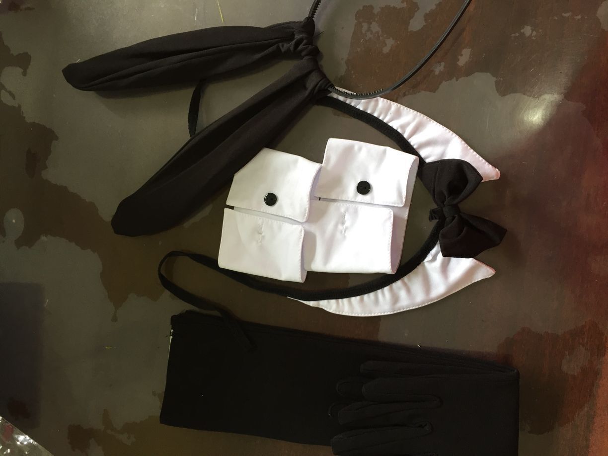 Jumpsuit+rabbit ears+collar+white bracelet+long gloves