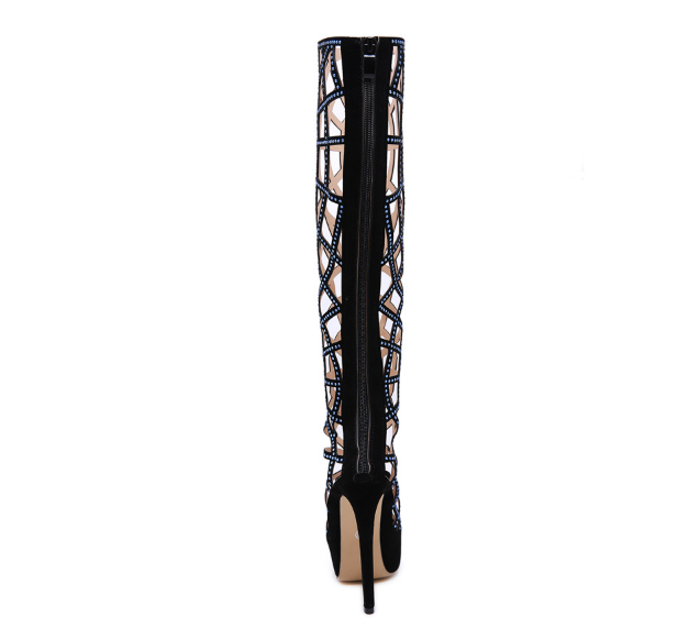 Black Shoes Sexy Hollow Out High Heels Boots