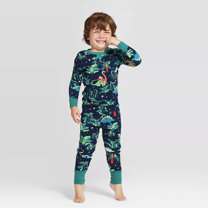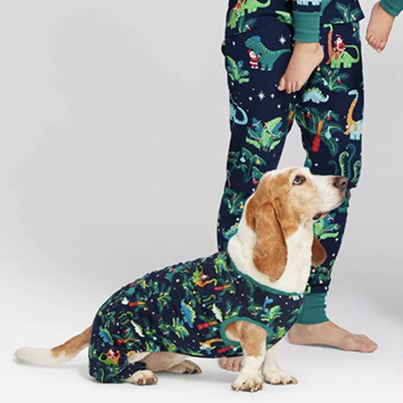 Dinosaur Christmas Dress Print Family Baby Boys And Girls With Dog Parent Child Pajamas