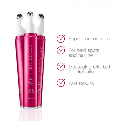 The Hairfinity Infinite Edges 15 ml Serum contains natural ingredients, including water. Revitalize and protect delicate or overworked areas of your hair and prevent breakage around your hairline. Our serum for alopecia and hair loss improves smoothness for stronger, shinier hair.