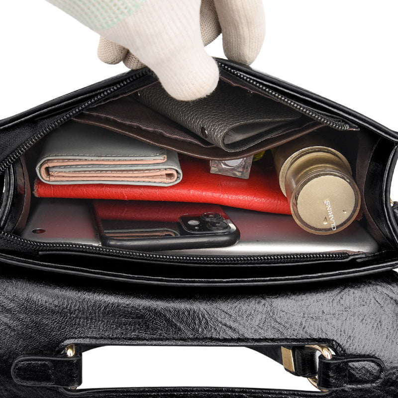Large Capacity Leather Stone Pattern Shoulder Crossbody Bag