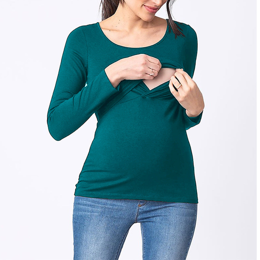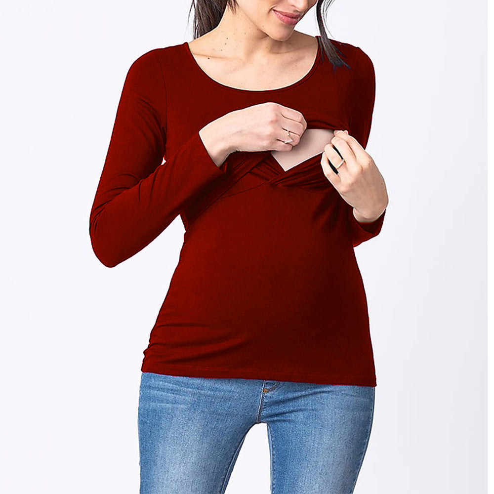 Long Sleeve Scoop Four Seasons Bottoming Breastfeeding T-shirt