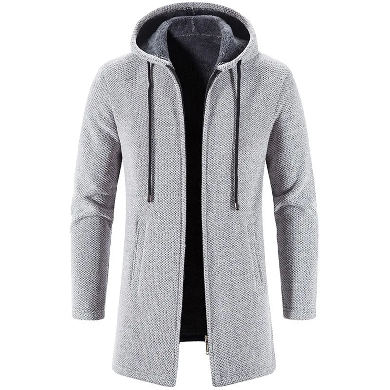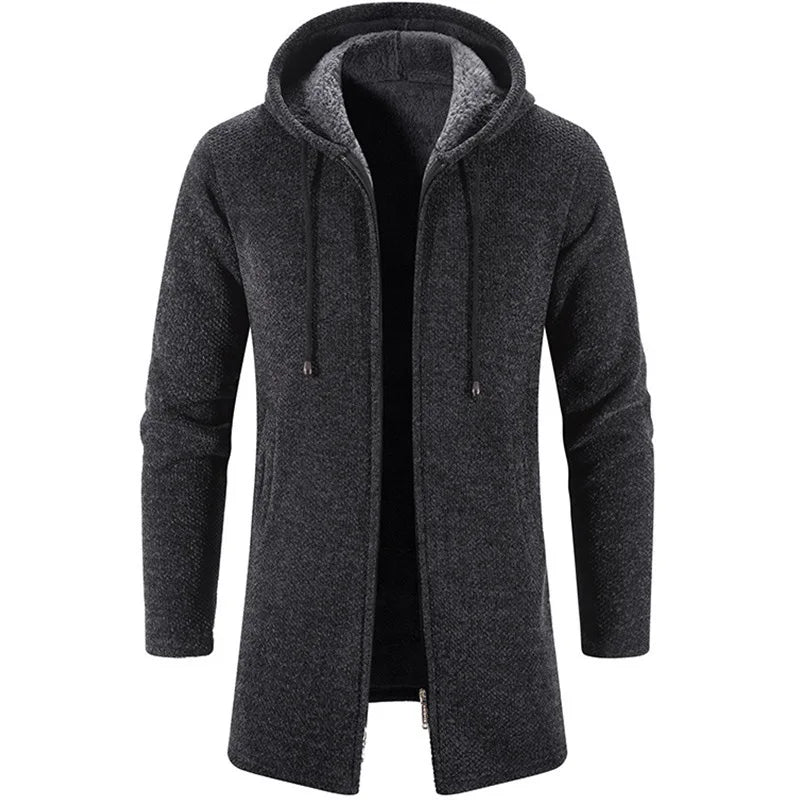 Men Long Trench Coat 2024 Knit Sweater Jacket Fleece