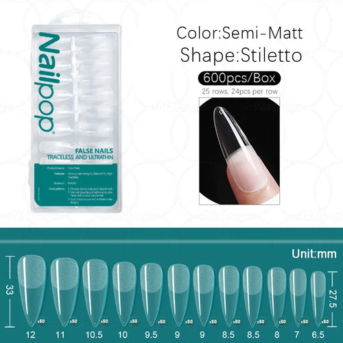 Nailpop 600pcs PRO Fake Nails Semi-Matte Almond Coffin Full/Half