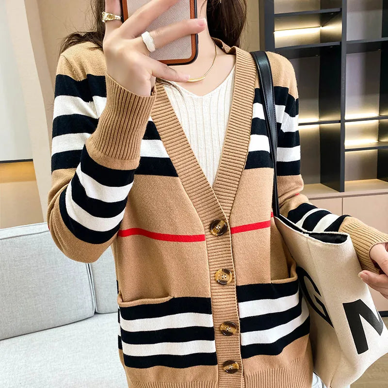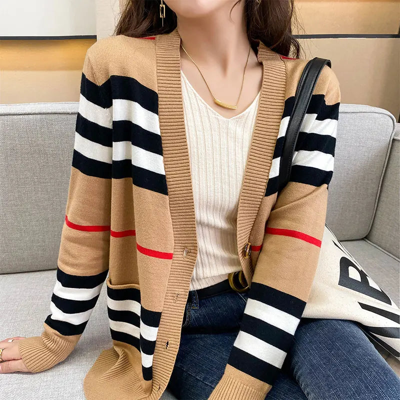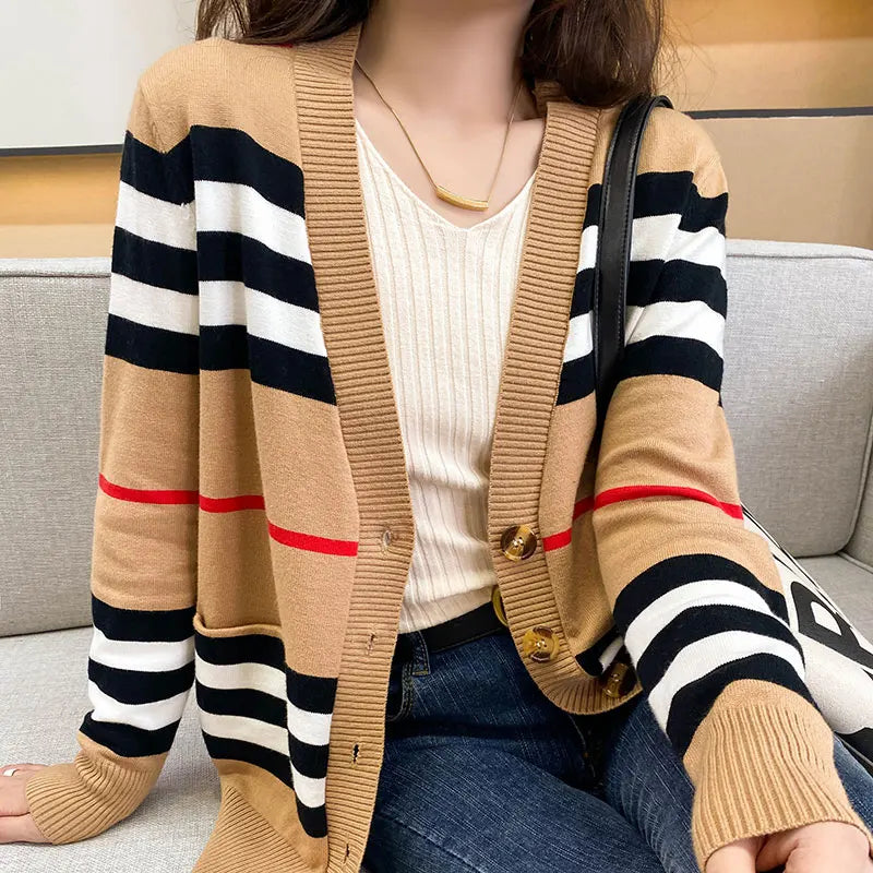 🌸 Embrace the Essence of Spring: Introducing the New Ma Baoli Plaid Cardigan – Where Knitted Cashmere Meets Net Red Chic! 🌸