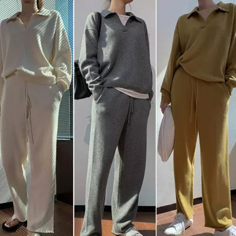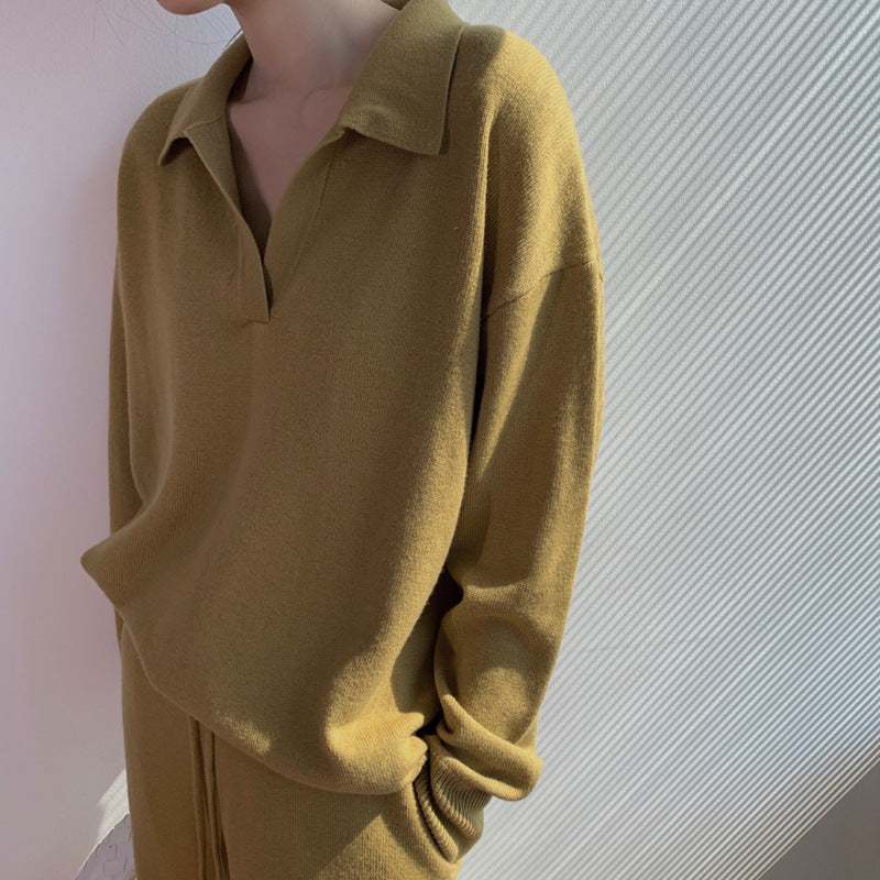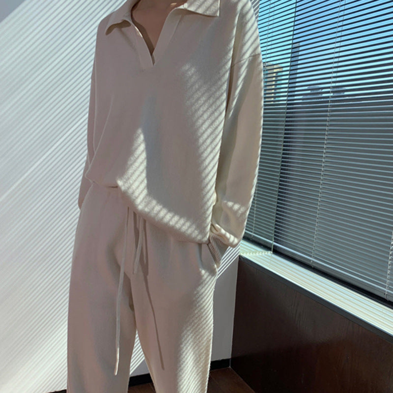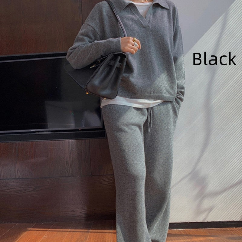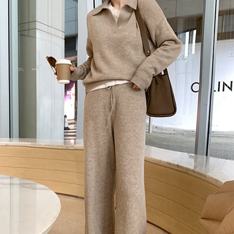 Sweater Outerwear Wide-leg Pants Two-piece Suit