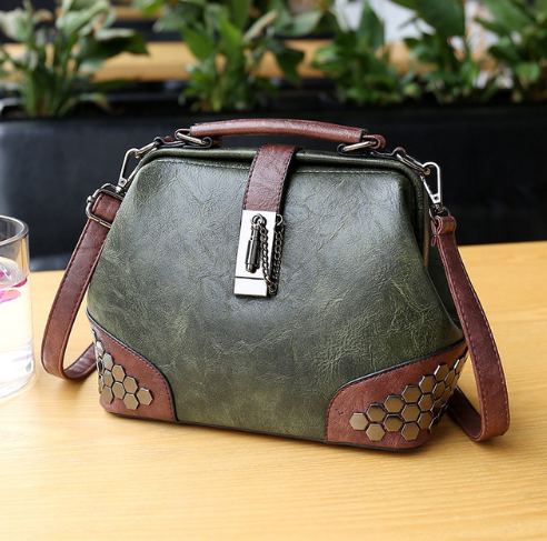 Women Handbag Leather Small Doctor Bag Women Shoulder Bag Female Crossbody Handbag Lock Chain Rivets Girls Vintage Women Bags